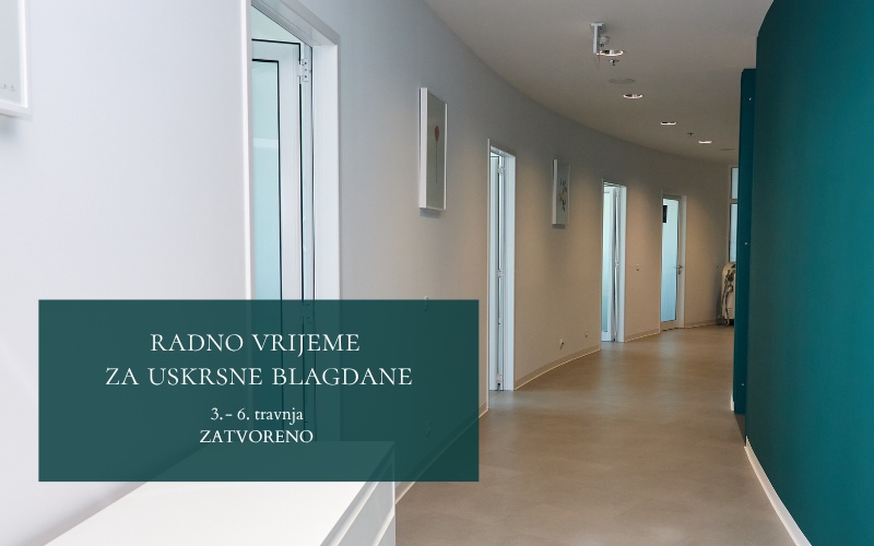 obavještavamo Vas da će u razdoblju od 03. do 06. travnja 2026. godine, zbog uskrsnih blagdana, poliklinika biti zatvorena.